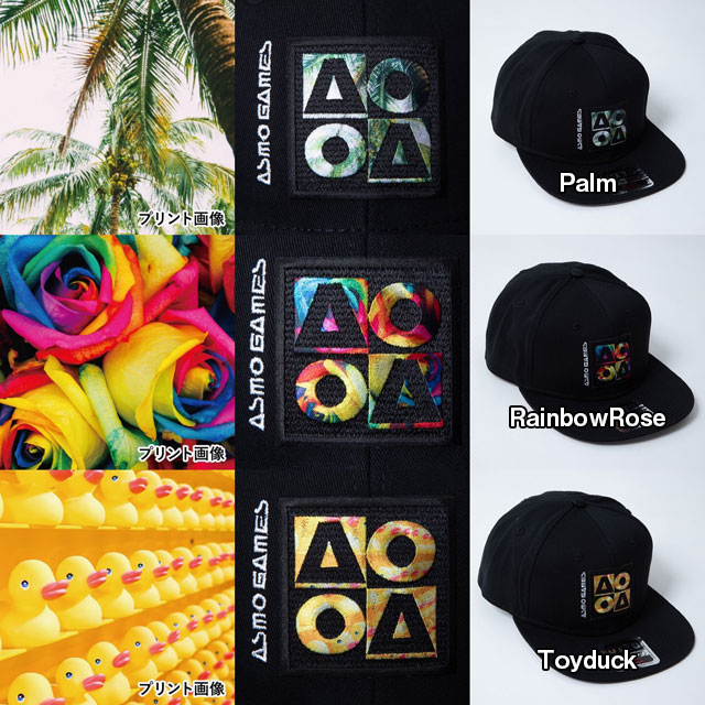 中央にロゴの刺繍とASMOGAMESのパターンワッペンをあしらいました。パターンワッペンの種類は30種類。多種多様のデザインをお楽しみください。